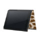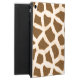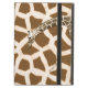 Fun iPad Air Gehäuse, mit eingebautem Ständer, und Grafik eines braunen und bräunlichen Giraffen Pelzmuster. Ein grafisch erweitertes Foto von Kopf und Hals einer Giraffe erstreckt sich über die Vorderseite des Gehäuses. Brauner Text auf der Vorderseite ist bereit, für sich selbst oder als eine tolle Geschenkidee zu personalisieren.