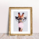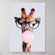 Giraffe mit Brille, die rosa Kaugummi blasen Poster