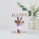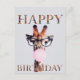 Giraffe, die eine Brille trägt, die einen rosa Kaugummi bläst. Herzlichen Glückwunsch zum Geburtstag im Blumendesign.