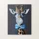 Giraffe mit Brille, Krawatte mit Bugs, blauer Kaug