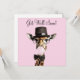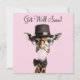 Giraffe mit Gläsern, einen Tophut und bläst einen rosa Kaugummi. Gute Begrüßung