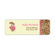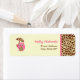 Adressetiketten, die eine Darstellung eines Giraffendrucks und einer rosa Eule enthalten, werden verlassen. Giraffe hält einen Schirm. Giraffe druckt Rand mit rosa Trimm rechts. Personalisieren Sie mit Ihrem Namen und Ihrer Adresse im Zentrum. Achten Sie auf passende Schreibwaren und mehr in Jill's Paperie.