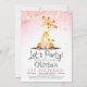 Jolie girafe rose fille 1er anniversaire invitation fête. Arrière - plan aquarelle et rayé en arrière.