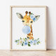 Fügen Sie mit diesen wunderschönen Kunstdrucken die Touchs in das Kinderzimmer oder Kinderzimmer Ihres Babys ein! Design-Features: Giraffe, blauer Kaugummi, blaue Aquarellfarben und Blume.