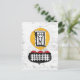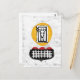 Niedliche gestreifte Giraffe, die über eine gelbe kreisförmige Form zeichne. Unterhalb der Giraffe liegt ein schwarzes Endstück mit weißem Crisscross-Muster und rotem Jakobsschnitt.