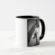 Schwarzweiss-Druck auf Tasse der Giraffendamhirschkuh und ihres Kalbs