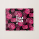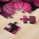 Dieses Basketball-Puzzle für schwarze und rosa Mädchen weist ein Muster aus verschiedenen Basketballgrößen in heißen Rosa auf, das in den schwarzen Hintergrund zu verblassen scheint - mit dem Namen des Basketballspielers und der Jersey-Nummer - von katz_d_zynes