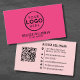 Girly Pink Moderne Minimalistische Logo QR Code Business Card. Diese elegante und feminine Visitenkarte eignet sich perfekt für Friseur, Make-up-Künstler, Social Media-Einflusspersonen, Marketing Manager oder alle, die auf der Suche nach einer stilvollen und modernen Touch sind. Die Vorderseite ist mit einem lebhaften magentafarbenen, rosafarbenen Hintergrund mit Ihrem Logo, Namen, Titel oder Firmennamen ausgestattet und schafft ein kühnes und auffälliges Design. Die Rückseite ist Set vor einem weichen, rosa Hintergrund und bietet Platz für ein berufliches Foto - ob für sich selbst, Ihr Produkt oder ein Kundenprojekt - zusammen mit Ihren Kontaktinformationen. Ein QR-Code ermöglicht eine einfache Verbindung mit potenziellen Kunden, um Ihre Website oder Social-Media-Konten zu sehen. Das saubere Layout verbindet fett formatierte Typografie mit anpassbaren Farben und erlaubt es Ihnen, sie auf Ihre Marke zugeschnitten zu haben. Personalisieren Sie diese lustige und zeitgenössische Karte heute, um einen bleibenden Eindruck verlassen!