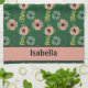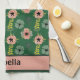 Farbige und niedliche, gürtnerrosa Blume botanisches, nahtloses Muster auf grünem Küchentuch. Es ist ein wunderschöner personalisierter Name, irgendein gelegentliches Geschenk für sie, die Blumenmuster Lieben. Sie können Text und Hintergrundfarbe ändern.