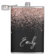Girl Black Rose Gold Blush Pink Glitzer Monogram Flachmann