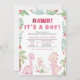 Machen Sie sich bereit zu brüllen und feiern Sie mit dieser Dinosaur Baby Dusche Einladung für ein kleines Mädchen. Dieses Design mit niedlichen rosa Dinosauriern, inklusive einem schlüpfenden Baby-Dino, umgeben von üppiger Vegetation, tropischen Blätter und boho-blumigen Akzenten, eignet sich perfekt für eine lustige und stilvolle Babydusche. BBS732