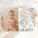 Deine hübsche kleine Erdnuss verwandelt SICH! Feiern Sie ihren besonderen Meilenstein mit unserer wunderschönen Einladung zum 1. Geburtstag, in der hübsche Illustration eines süßen Elefanten, prächtige, rot-rosa Blume und Eukalyptusgrün