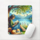 Girl Lesend a Book under a Tree with a Sleepy Cat Mousepad