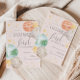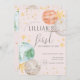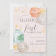 Adorable Raum Geburtstagseinladung mit pastellfarbenen Planeten, Mond, Sternen und Imitaten goldenen Akzenten. Ideal für eine Mädchen Galaxie-Babydusche im Weltraum.