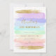 Vous planifiez une fête d'anniversaire pastel pour le 5e anniversaire de votre petite fille ? C'est l'heure d'une fête pastel de 5 ans ! Il est temps de rassembler votre famille et vos amis avec un pastel personnalisable fille de cinquième anniversaire invitation de fête. Modifiez facilement votre invitation d'anniversaire pastel modifiable avec tous les détails de la fête d'anniversaire pour la fille d'anniversaire. Cette invitation de fête d'anniversaire pastel éditable donne le ton de votre fête d'anniversaire pastel arc-en-ciel. La collection AMITOLA présente un design mignon avec un arrière - plan blanc et des traits de pinceau d'aquarelle aux couleurs pastel de l'arc-en-ciel, avec des traits de peinture or et des étoiles le long du haut et du bas. Une association de polices de script et de serif en or et gris avec tout le texte modifiable complète l'invitation de cette fille 5ème anniversaire pour une fête d'anniversaire pastel.