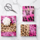 Girl Pink Cream Black Leopard Print Geschenkpapier Set