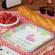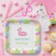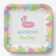 Tropische Blätter und Blume mit Früchten und einem niedlichen Flamingo Float für das perfekte Girl Pool Party!