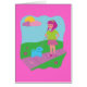 Diese niedliche Darstellung eines jungen Mädchens mit rosa Haaren und einem limiengrünen Shirt, das an einem sonnigen Tag ihren niedlichen Bichon Frisé-Hund spaziert, ist funky und stilvoll! Dieses lustige Kunstwerk ist das ideale Geschenk für alle, die Hunde und Retro Vintag inspirierte Cartoon-Kunst Liebe!