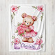 Wrap your little one in softness and love with this personalized nursery fleece blanket! Featuring a beautiful watercolor teddy bear wearing a pink dress and holding a bouquet of pink roses, this blanket adds a gentle, feminine touch to any baby girl’s room. Personalize it with your baby’s name to create a one-of-a-kind keepsake or a thoughtful baby shower gift. A sweet blend of comfort and charm for your little princess!
