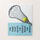 Lacrosse Sportpuzzle für Mädchen mit einem kreativen Zitat, einem lachen Stock und Ball.