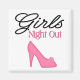 Shirts für die letzte Flut der Briden. Bachelorette Shirts mit den Worten Girls Night Out und die Grafik eines rosa High Heel Schuh. Design verfügbar auf Shirts, Kappen, Tasse, Steinen, Reisebügeln, Schaltflächen und vieles mehr.