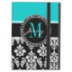 Girly Schwarzweiss-Damast-Muster mit Monogramm-Initialen-Aqua. Personifizieren Sie mit Ihrem Namen und Monogramm. Damast Gallery© andere Farben und Arten verfügbar in unserem Geschäft bei www.zazzle.com/DamaskGallery*