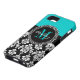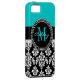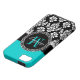 Girly Aqua-Schwarz-Damast Ihr Monogramm-Name Case-Mate iPhone Hülle
