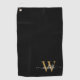 Modernes Girly Elegant Black and Gold Monogram Initial Name Signature Script Custom Personalisiert Golf Handtuch. Dieses Design mit Ihrem Vornamen in einem hübschen handgeschriebenen Stil Swash Schwanz Schriftart Typografie (oder Kalligrafie) mit Monogramm Erstmaligkeit in Gold und Weiß auf Schwarz. Diese sind einfach zu anpassen. Große stilvolle weibliche Geburtstagsgeschenke, auch für den Muttertag, Hochzeit, Junggeselinnen-Abschied, Brautparty und Es ist für das Mädchen, das Lieben einzigartige, saubere minimalistische Dinge.