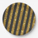 Girly Black Gold Glitzer Glitzern Stripmuster Pappteller