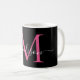 Girly Black Hot Pink Monogram Elegant Script Kaffeetasse