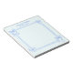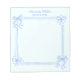 This girly feminine personalized notepad features a decorative blue bows frame on a soft blue background. Customize it with a name and your desired text. This coquette timeless design is an excellent choice for teen girls and women.