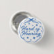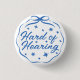 Girly Blue Whimsical Doodle Bow Hard of Hearing Button