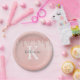 Girly Blush Pink Monogram Drilling Glitzer Pappteller