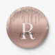 Girly Blush Rose Gold Glitzer Drilling Monogram Pappteller