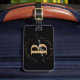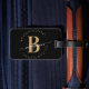 Die personalisierte Gepäckmarke für das mit Monogramm Gepäck wird von Mädchen, minimalistisch, einfach, modern, schwarz und goldfarben geschrieben. Mit einem Monogramm-Initial- und einem gürtelhaften Namensschriftskript in einem handgeschriebenen Kalligraphie-Schriftart mit Schwänzen und gepunktetem Kreisrahmen um Ihr Monogramm.