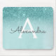 Parties scintillant d'étincelle bleu d'Aqua Turquoise fille Nom du monogramme Glam Mousepad. Ce Mousepad peut être customisé pour inclure votre prénom.