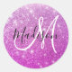 Girly & Glam Purple Glitter Sparkles Monogram Name Runder Aufkleber