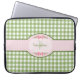 Girly grünes Gingham-Monogramm mit Namen Laptopschutzhülle