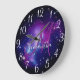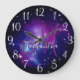 Girly Lila Celestial Foto Monogram Große Wanduhr
