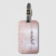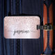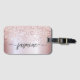 Girly Blush Rose Gold Glitzer Glam Metallic Monogram Name Script Custom Personalisiert Luggage Bag Tag. Diese Design mit Ihrem Vornamen in einem hübschen handgeschriebenen Stil Swash Schwanz Schriftart Typografie auf Imitaten Rose Gold metallische Folie mit funkelnden Glitzer Rand. Diese sind einfach zu anpassen. Stilvolles Frauengeschenk für Hochzeit, Brautparty, 16 Geburtstag, Abschluss und für alle, die Lieben glamourösen Stil.