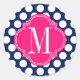 Girly Navy & Pink Big Dots Mit Monogramm Runder Aufkleber