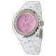 Ein einfaches Musikdesign mit einem großen, rosafarbenen, rosafarbenen Glattleder auf einem rosa Hintergrund mit einem subtilen Hintergrund von musikalischen Noten. Das erhöhte satinierte Aussehen des Klebers ist ein Druckeffekt. Ideal für Musiker, Musiklehrer, Musikstudenten oder Musikliebhaber. sgb01