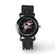 Diese niedliche Armbanduhr besticht durch einen zauberhaften, rosa Cartoon, der in einem aquamarinen grünen und Lavendelpulli gekleidet ist. Das helle Bild wird auf einem dramatischen schwarzen Hintergrund platziert. Aquamarine Zahlen machen es einfach, die Uhr zu lesen. *Dieses Design verwendet Kunstwerke, die im Eigentum von Encore Software, Inc. stehen und deren Lizenzgebern die Nutzung gewähren. Alle Rechte vorbehalten.