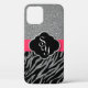 Girly Pink Silver Glitzer Zebra Pattern Initials Case-Mate iPhone Hülle