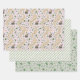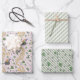 Adorable Set von 3 einzelnen Laken Spaß & Girly St. Patrick's Day Wrapping Paper, handgezeichnet von Nathalie Portet in schwarzer Tinte. Blatt #1: Verleiht ein skurriles Design von Goldmünzen in kurvigem Muster, Goldtöpfe unter Regenbögen, grüne Klee, Pferdeschuhe, Kobolhüte, grüne Herzen, winzige grüne Pilze und einen Wunsch von viel Glück. Blatt 2: Enthält ein pastellrosa und grünes Gingham-Muster. Blatt Nr. 3: Enthält Kleber und "Glück"-Texte gegen festlich gestreiftes rosa und grünes Muster.