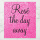 Stilvoll, trendig, gürtelig "Rosé the day away" Weinetikett mit hellrosa Glitzer glänzend Hintergrund und schwarzem Schriftzeichen.