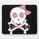 Dieser girly Schädel-undgekreuzte Knochen Entwurf wird mit Vektoren gezeichnet und ist vollständig kundengerecht. Personifizieren Sie ihn unter Verwendung der Schablone, oder Klicken "fertigt sie" besonders an, um sie weiter zu ändern. Aufmachung einer digitalen Grafik des Totenkopfs mit gekreuzter Knochen mit rosa Augen und einem Bogen.