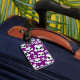 Girly Skullz: Emoscheln mit rosa Bögen auf einem lila Hintergrund. Nahtlose Fliese. © und ® Bigstock® - Alle Rechte vorbehalten.