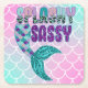Girly und Glam Splashy Sassy lila und grüner Glitzer Meerjungfrau Schwanz Papier Untersetzer mit einem rosa und türkisfarbenen Meerjungfrau Waage Hintergrund.
