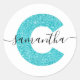 Girly Turquoise Glitzer Letter C Monogram Runder Aufkleber